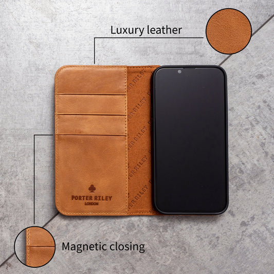 iPhone 15 Leather Case. Premium Nubuck Genuine Leather Stand Case/Cover/Wallet