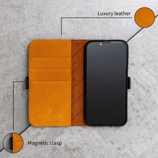 iPhone 15 Leather Case. Premium Nubuck Genuine Leather Stand Case/Cover/Wallet