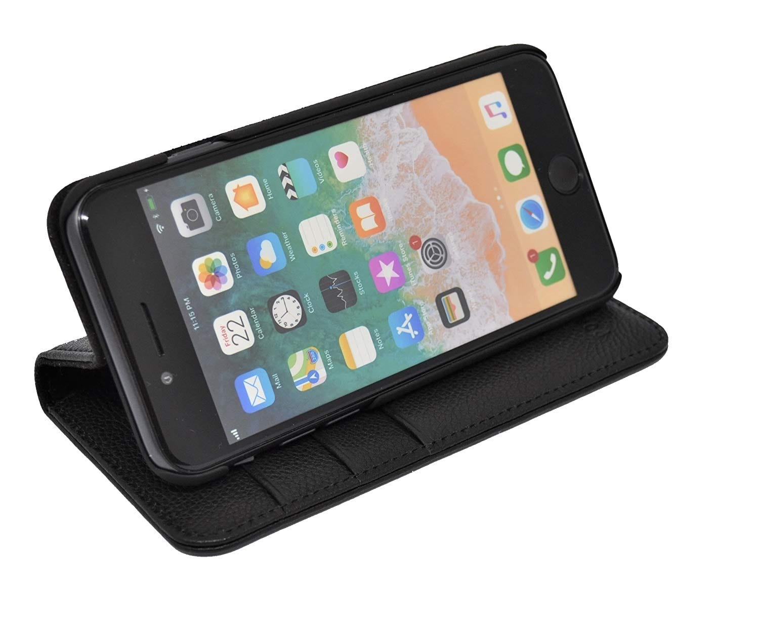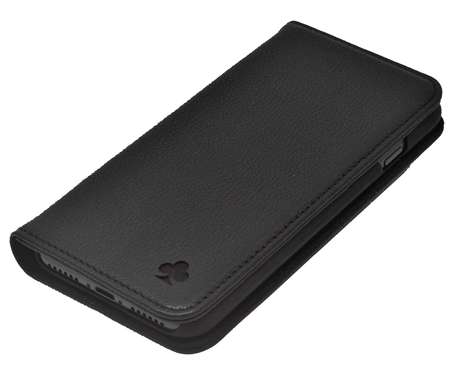 iPhone 5S / 5 Leather Case. Premium Slim Genuine Leather Stand Case/Cover/Wallet (Pure Black)
